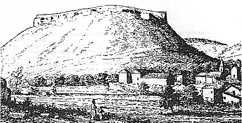 Le Camp de César, dessiné par Léon Alègre en 1865, au-dessus de Laudun (30).