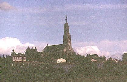 Léglise de Saint-Michel-Mont-Mercure, bâtie sur le mont Mercure et dominée par la statue de saint Michel.