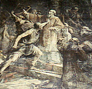 D'emblée la ville semble placée sous le signe des jumeaux (Gémeaux) et des Dioscures. Le géographe Timée ne notait-il pas, dès le IIIème siècle av. J.-C., que " les Celtes riverains de l'Océan ont une vénération particulière pour les Dioscures " ? Il s'agissait apparemment de héros fondateurs, venus de la mer. C'est bien un couple de frères martyrs, qui peuvent symboliquement considérés comme des jumeaux, que l'on retrouve en tant que fondateurs de la ville chrétienneà la fin du IIIème siècle : saints Donatien et Rogatien. Deux évêques illustrèrent aussi cette période à Nantes, même si l'on a pu dire du premier d'entre eux, saint Clair, qu'il avait été directement envoyé par saint Pierre dès le Ier siècle. C'est à son nom sans doute qu'il a dû sa réputation de pouvoir rendre la vue aux aveugles, infirmité qui le toucha, paraît-il, lui-même. Saint Similien, troisième dans la liste des évêques nantais, a pu être cité comme sauroctone. Une église lui a très vite été dédiée la tête jetée par les Normands dans le puits situé dans l'église qui lui est dédiée hors les murs de Nantes, dans une zone collines boisée, à l'opposé d- on ne pouvait regarder dans le puits sans encourir la colère du saint)