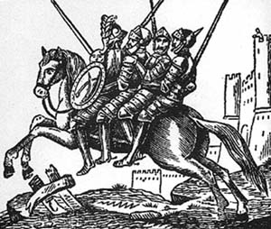 Les quatre fils Aymon, montés sur le cheval Bayard dont le dos sallonge selon la charge quil porte, sont notamment les héros de la fresque Renaud de Montauban, où on les voit fuir à travers la France la hargne de Charlemagne.
